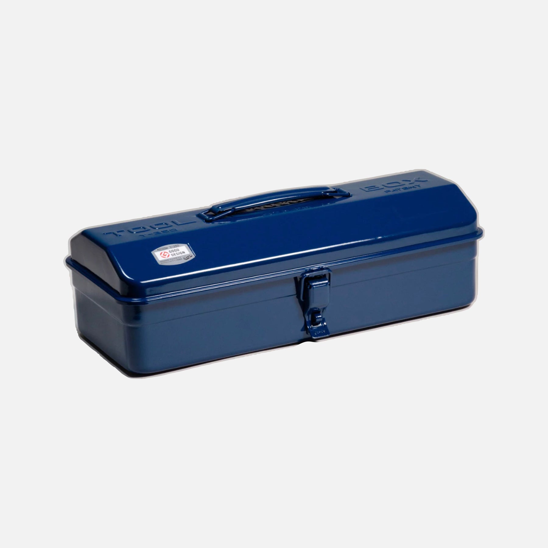 The shape of this toolbox is called "Camber Top" due to the slightly arched shape of the lid that provides more space for storage. It's seamless, light-weight, intentionally made without any sharp corners. The handle is also rounded and gentle in design.